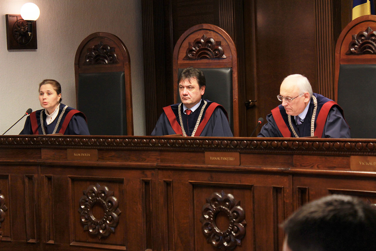 Mr Tudor PANŢÎRU, President, Mr Aurel BĂIEȘU, Mr Igor DOLEA, Mrs Victoria IFTODI, Mr Victor POPA, Mr Veaceslav ZAPOROJAN, justices