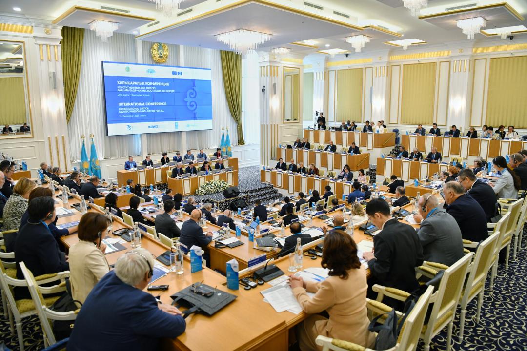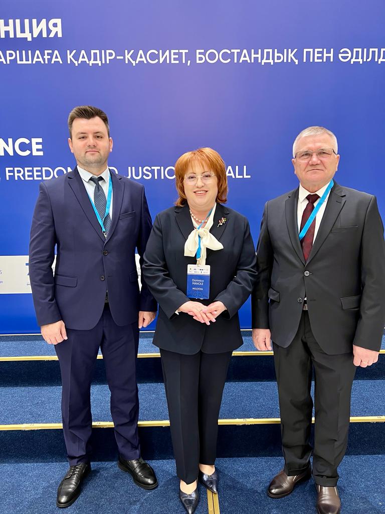2023 Participarea delegației Curții Constituționale la Conferința internațională de la AstanaÎn perioada 7-8 septembrie 2023, delegația Curții Constituționale condusă de dl Nicolae Roșca, Președintele Curții Constituționale, alături de doamna Domnica Manole, judecător constituțional, și dl Dumitru Avornic, șef-interimar al Direcției asistență judiciară, au participat la conferința internațională „Justiție constituțională: demnitate, libertate și justiție pentru toți”, dedicată Zilei Constituției Republicii Kazahstan și aniversării a 75 de ani a Declarației universale a drepturilor omului, care s-a desfășurat la Astana, Republica Kazahstan. În cadrul conferinței, Președintele Curții Constituționale, dl Nicolae Roșca, a ținut un discurs cu genericul „Controlul constituțional: de la textul original la o interpretare care are în vedere tendințele de dezvoltare a drepturilor și libertăților fundamentale”. Doamna judecător Domnica Manole a participat la eveniment în calitatea sa de membră a Comisiei de la Veneția și a avut o prezentare cu tematica „Beneficiile excepției de neconstituționalitate în Republica Moldova”. Conferința Internațională a reunit judecători constituționali din peste 30 de țări din întreaga lume și reprezentanți ai organizațiilor internaționale, precum Consiliul Europei, Comisia Europeană pentru Democrație prin Drept (Comisia de la Veneția), Organizația Națiunilor Unite (ONU), Organizația pentru Securitate și Cooperare în Europa (OSCE), Curtea Europeană a Drepturilor Omului și altele