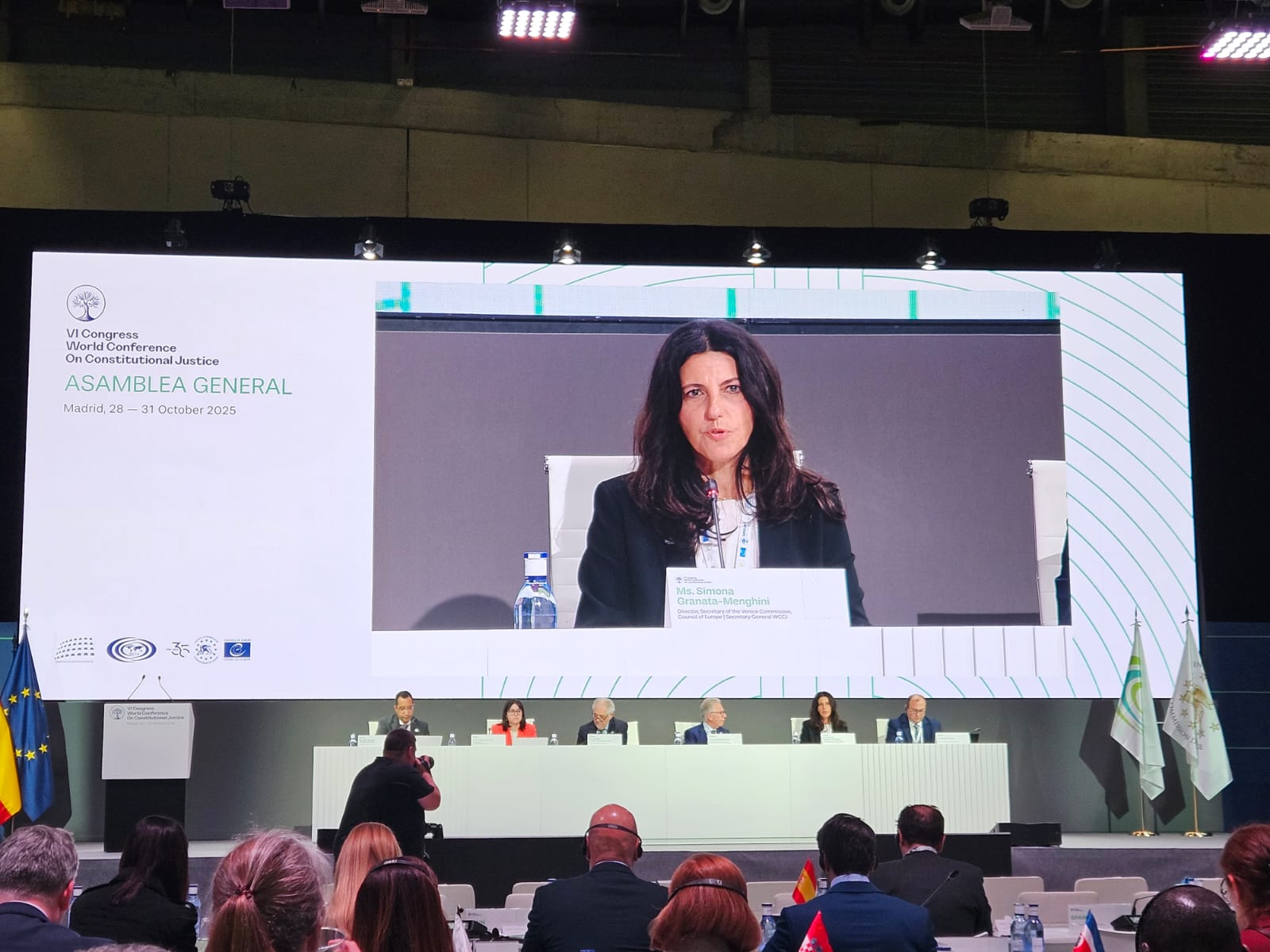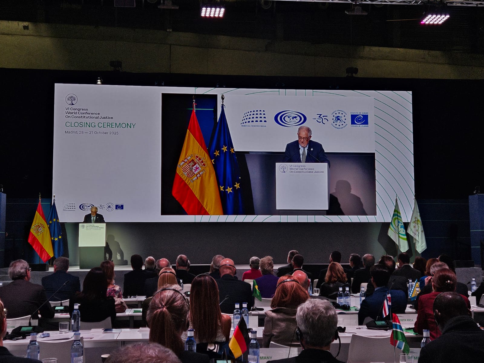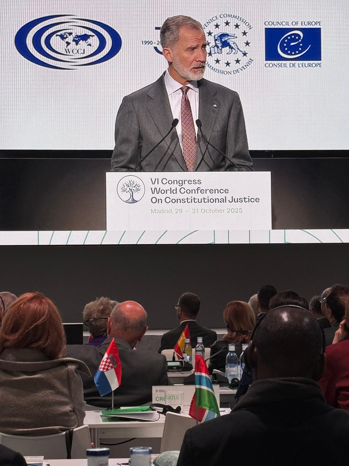 2025 Întâlnirea Președintei Curții Constituționale cu Majestatea Sa Regele Felipe al VI-lea la finalul lucrărilor CongresuluiLa data de 30 octombrie 2025, Președinta Curții Constituționale a Republicii Moldova, doamna Domnica Manole, a participat la ceremonia de închidere a celui de-al VI-lea Congres al Conferinței Mondiale privind Justiția Constituțională (WCCJ), desfășurat la Madrid, eveniment onorat de Majestatea Sa Regele Felipe al VI-lea al Regatului Spaniei. În mesajul său adresat participanților, Regele Felipe al VI-lea a evidențiat rolul justiției constituționale în garantarea libertății și valorilor statului de drept, subliniind că principiile fundamentale consacrate în constituții oferă societăților moderne un reper etic și o protecție solidă împotriva extremismului. Majestatea Sa a accentuat că aceste principii reprezintă temelia conviețuirii pașnice, a reconcilierii și a unității în cadrul unui stat de drept și democratic. În marja evenimentului, Președinta Domnica Manole a avut o scurtă întrevedere cu Majestatea Sa Regele Felipe al VI-lea. În sesiunea de închidere au mai susținut alocuțiuni Președinta Comisiei Europene pentru Democrație prin Drept (Comisia de la Veneția), doamna Claire Bazy Malaurie, și Președintele Curții Constituționale a Spaniei, domnul Cándido Conde-Pumpido Tourón. Doamna Bazy Malaurie a subliniat că apărarea drepturilor constituționale este indisolubil legată de independența curților constituționale, aceasta fiind o condiție esențială pentru menținerea echilibrului democratic și pentru garantarea statului de drept. Tot în aceeași zi, doamna Domnica Manole a participat la Adunarea Generală a Conferinței Mondiale privind Justiția Constituțională, organul decizional al WCCJ, în cadrul căreia au fost examinate diverse subiecte privind activitatea organizației. Participarea Președintei la acest eveniment de prestigiu reafirmă angajamentul Curții Constituționale a Republicii Moldova față de valorile universale ale democrației, statului de drept și justiției constituționale. |