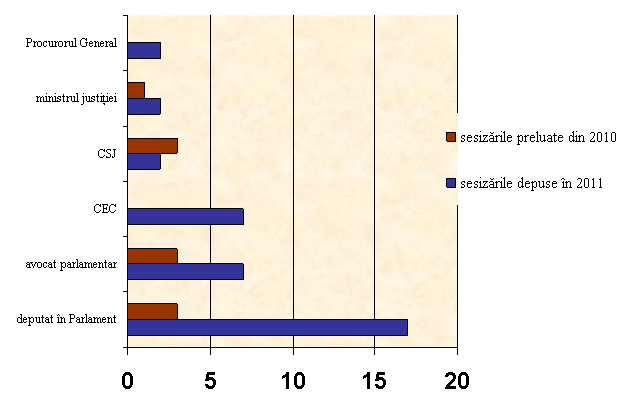Sesizări depuse la Curte de către subiecţii abilitaţi cu acest drept